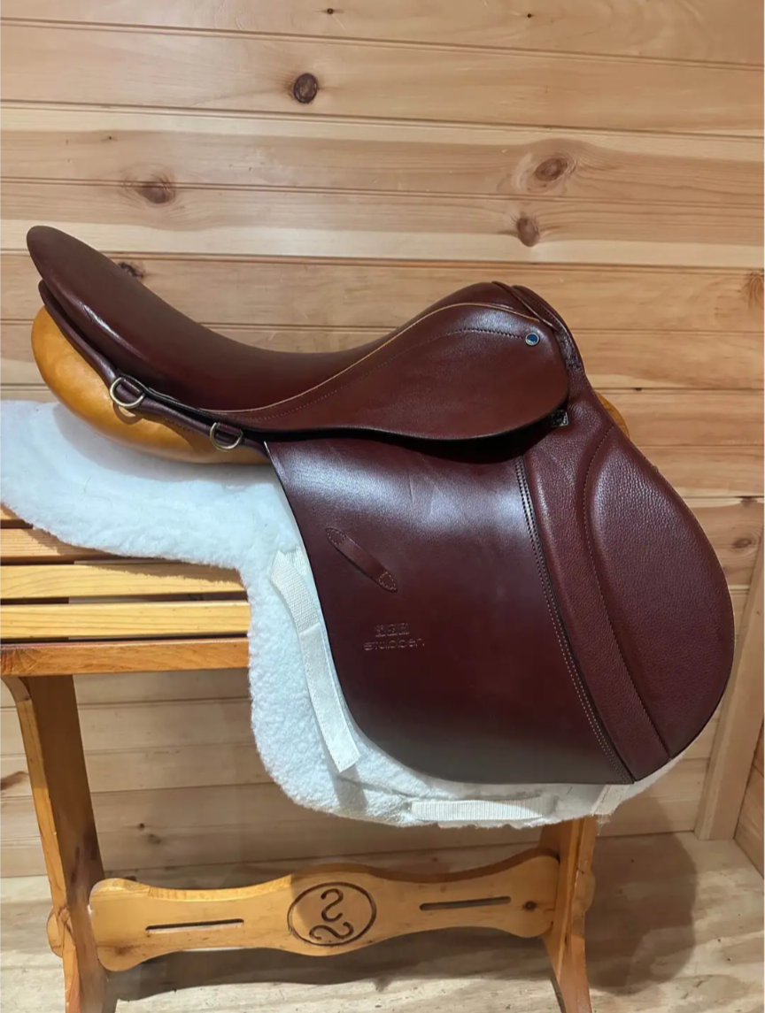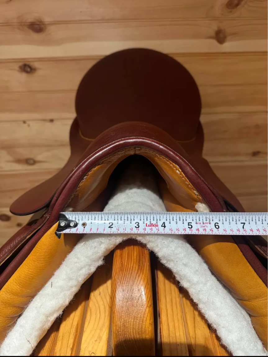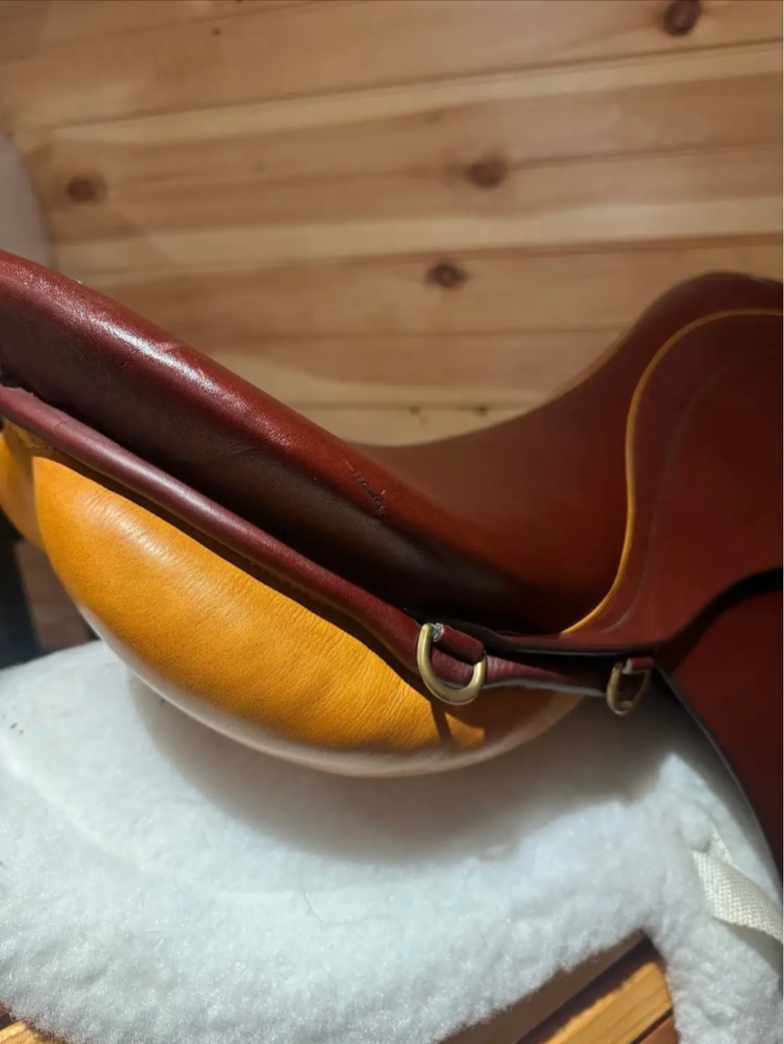 Beautiful rich mahogany leather, deep supportive seat and wool‑flocked panels. A versatile VSD D.L. model offering comfort, balance and stability for flatwork, hacking and low‑level jumping.