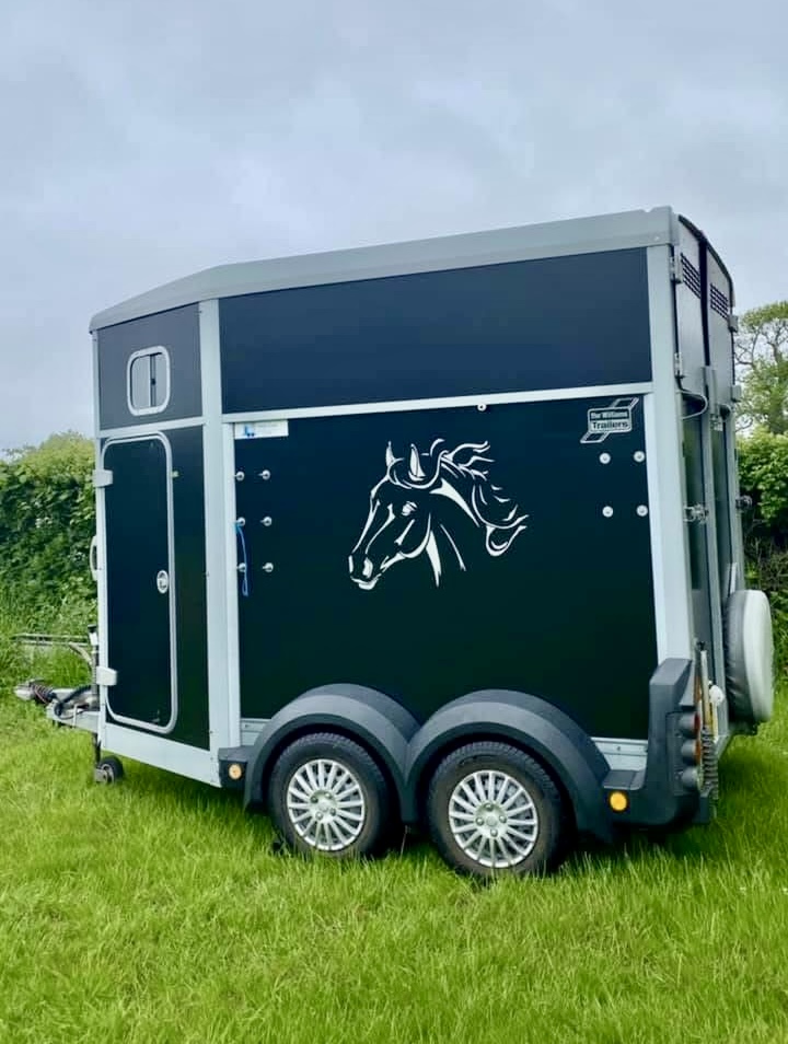 Mk2 HB506 Ifor Williams Horse Trailer Black with horse head graphic on the side. High…